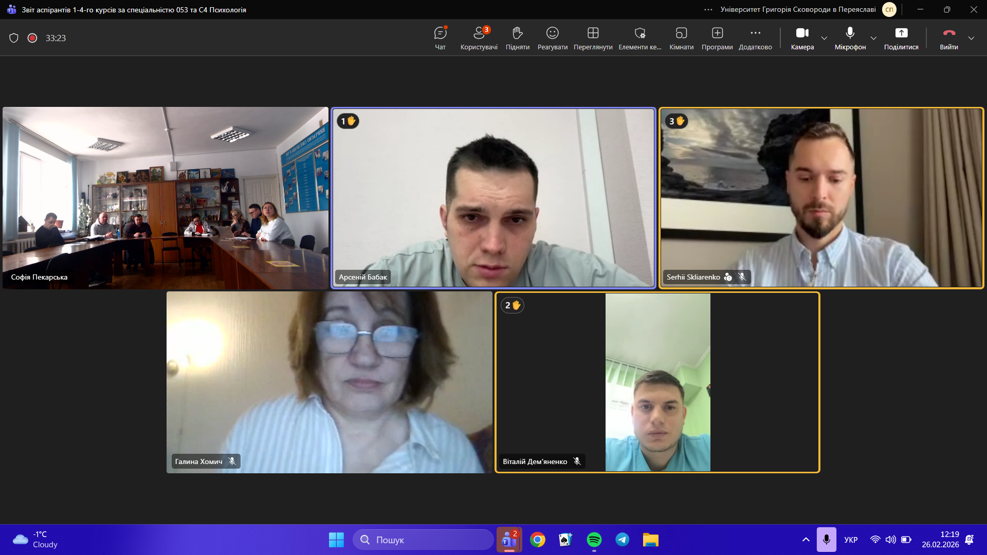 2 березня 2026 року в Університеті Григорія Сковороди в Переяславі відбулося планове засідання, на якому аспіранти спеціальностей 053 Психологія та С4 Психологія презентували звіти про свої наукові досягнення за 2025 рік. У засіданні взяли активну участь члени групи забезпечення освітньо-наукових програм та наукові керівники аспірантів.